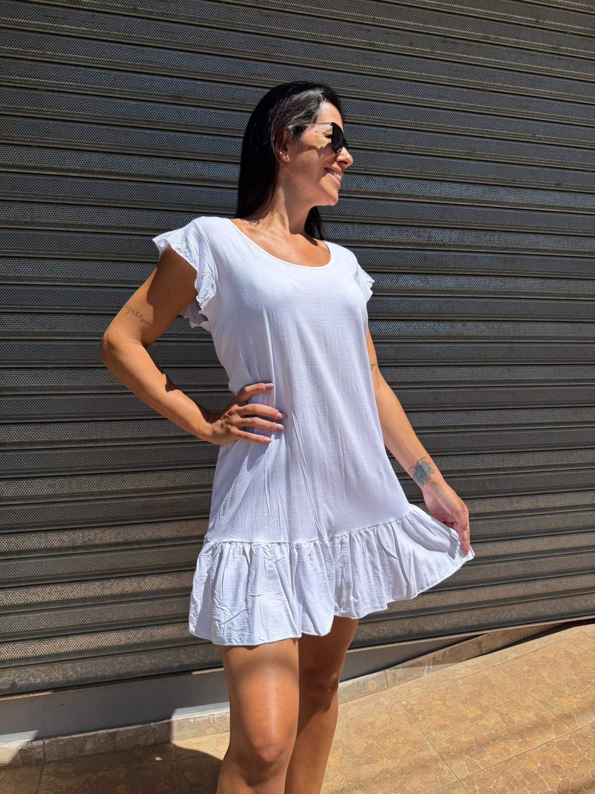 Vestido blanco de lino volados